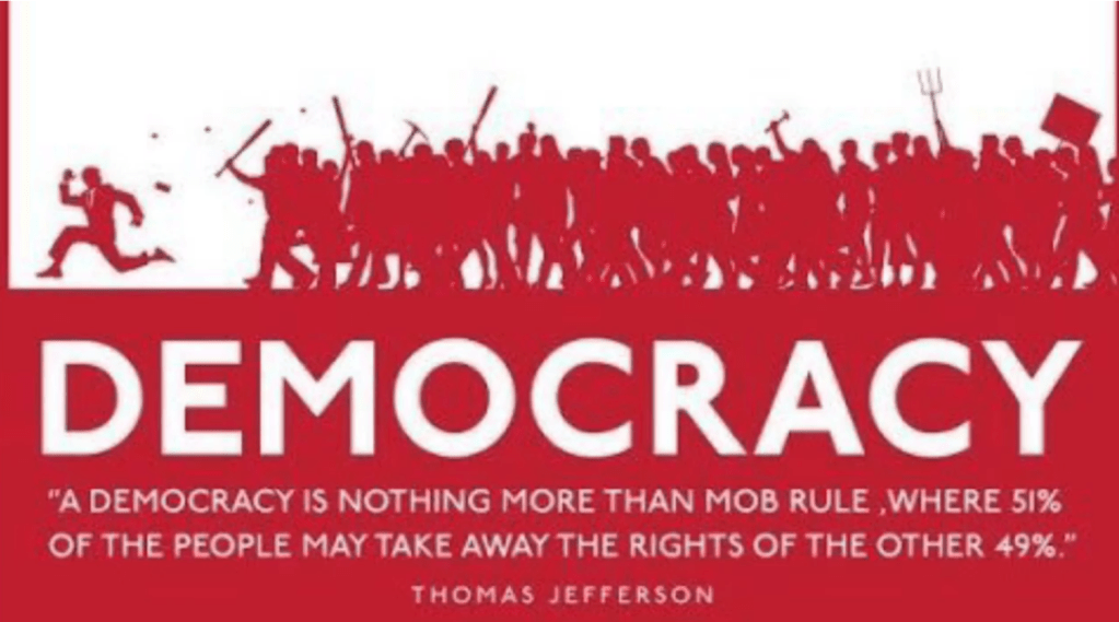 Structure and Hierarchy: An Anarcho-Monarchist society could be structured in many different ways. The Monarch’s role could be to provide voluntary private defense or an Anarcho-Monarch’s job could be very similar to a Homeowner Association’s President. An Anarcho-Monarchy would be primarily funded through contractual monthly fees or other potential services. What separates Anarcho-Monarchism from traditional Statist Monarchies is the fact that Anarcho-Monarchism is based around voluntary association and private contracts rather than unnecessary violence and extortion. You can boycott a crony Monarch like any other private business if you so desire. This level of personal freedom means the real political power is always in the hands of individual private owners. This means that any individual wishing to enter a potential private governance industry that could form in a stateless society would need to respect the interest of their subjects (clients/tenants) or risk bankruptcy or being violently overthrown if they attack their consumer base. Choose your King, form your own Kingdom with friends who agree with you, or you can leave an Anarcho-Monarchist community and choose or create another non-Monarchist social order based on your preferences, so long as it’s voluntary. This means that Anarcho-Monarchism isn’t hostile towards the existence of other Anarchist philosophies so long as they’re voluntary. One of the greatest aspects of Monarchism is how easy it is to destroy if a Monarch goes too far. Democratic societies tend to have much more elected representatives in office as well as a majority vote that sympathizes and voted for said representatives. This makes democratic societies difficult to demolish if the majority vote goes too far and advocates for policies that strip away freedoms from the minority vote. This is why I see democracy as nothing more than mob rule in its purest form.